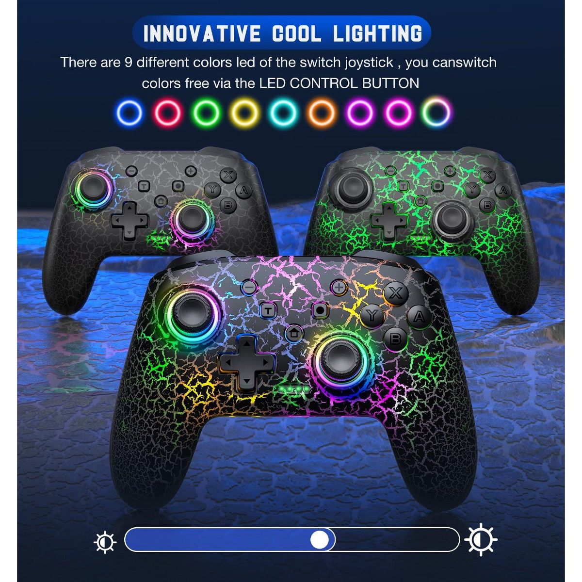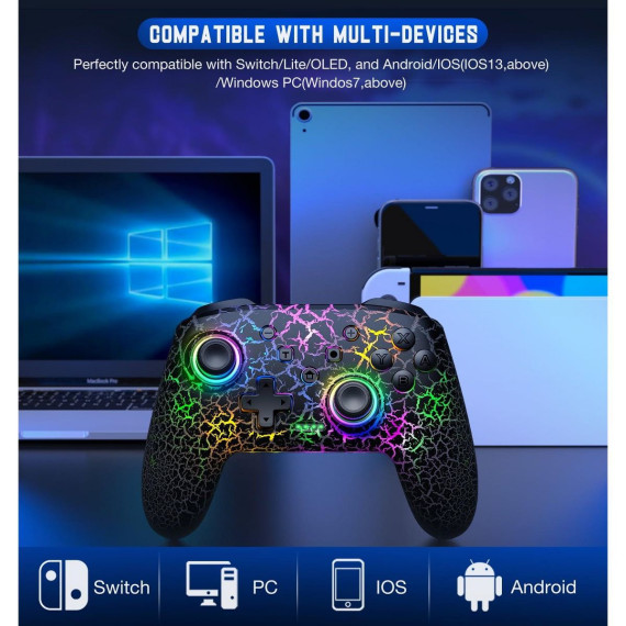 Beboncool Wireless Pro Controller for Nintendo Switch Crack Design LED Gaming Controller