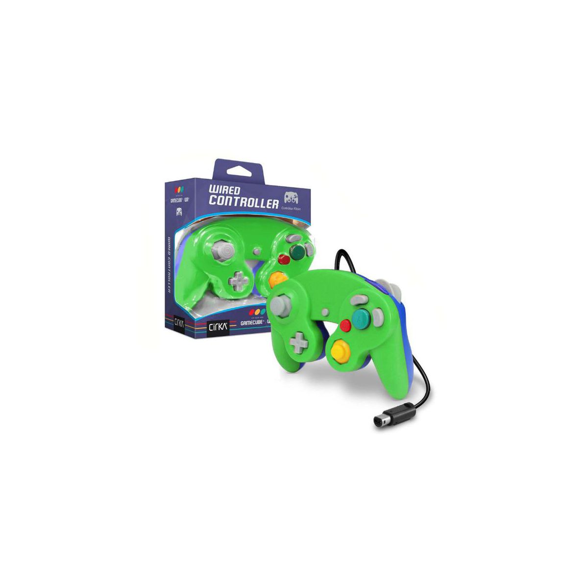 Cirka Wired Controller for Nintendo Gamecube/Wii in Neon Green/Blue