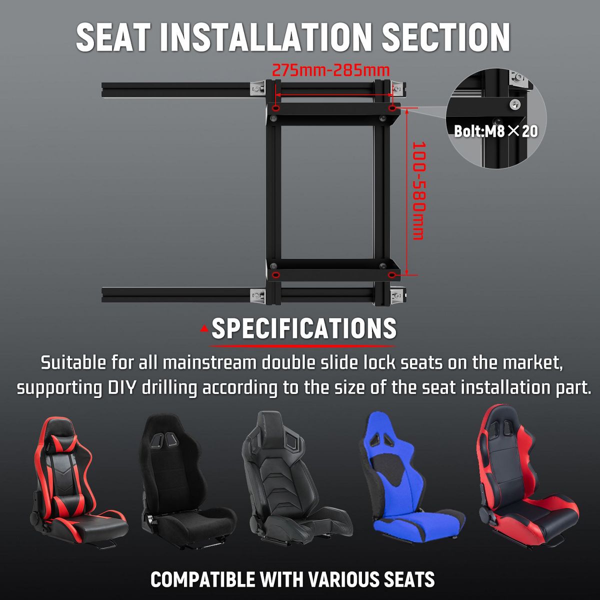Dardoo racing sim cockpit is built with reinforced 40×80mm aluminum profiles that provide unwavering stability for high-torque systems, while offering precision adjustments for perfect ergonomics and compatibility with all major racing peripherals. The modular design allows for seamless expansion with official seats and monitor mounts.