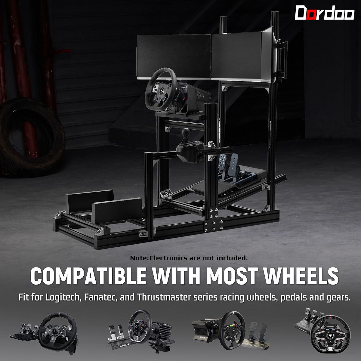 Dardoo 4080 Aluminum F1 Sim Rig with Integrated Triple Monitor Stand for an Immersive Experience.Excluding electronic devices.