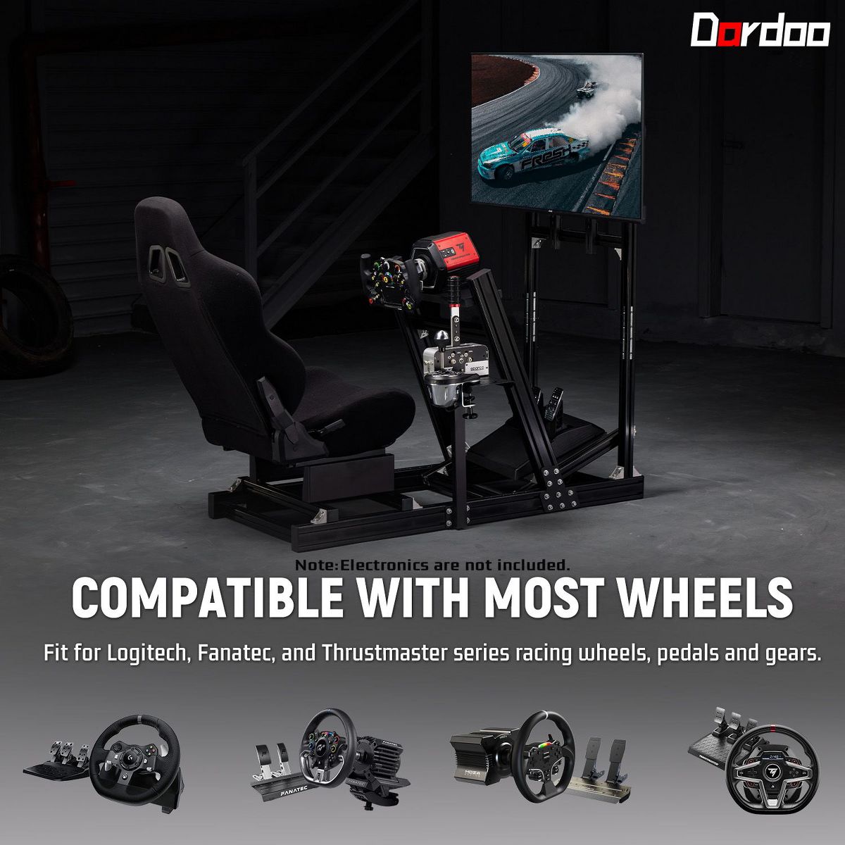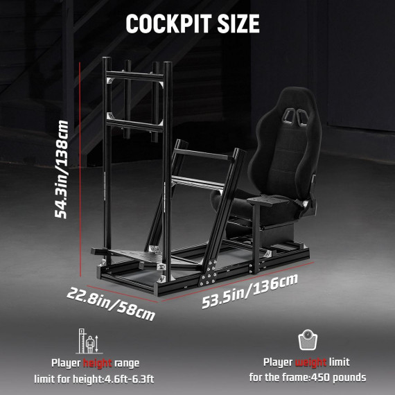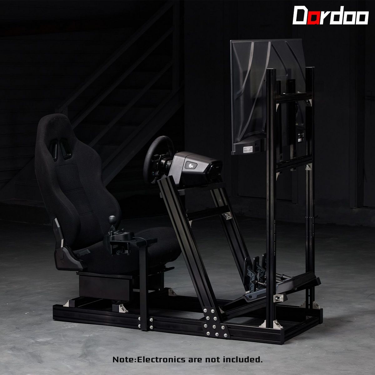 Dardoo 4080 & 4040 Aluminum Racing Sim Cockpit with Monitor Stand & Black Seat,for Thrustmaster,Moza & Logitech.Not Include Wheel,Pedal,and Monitors
