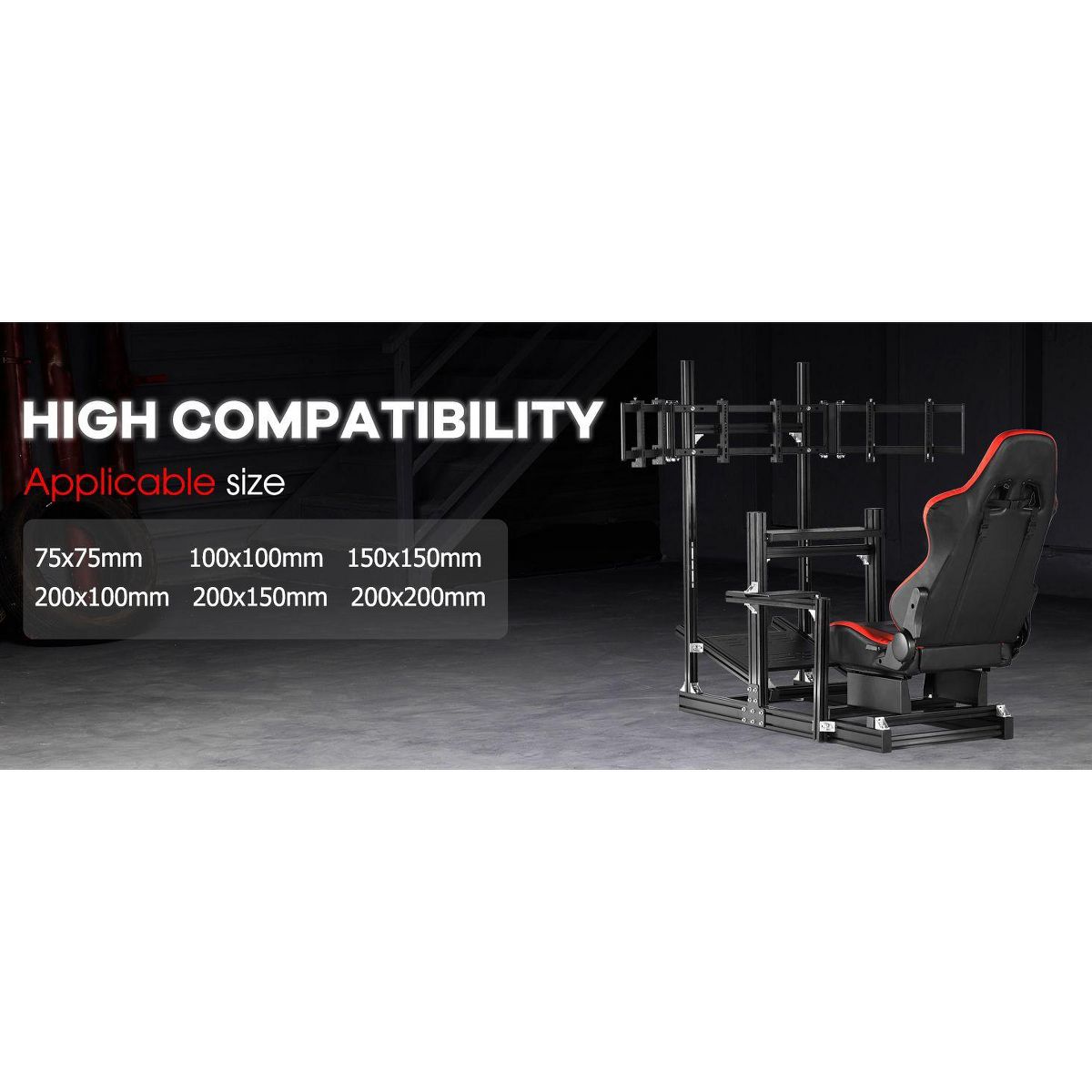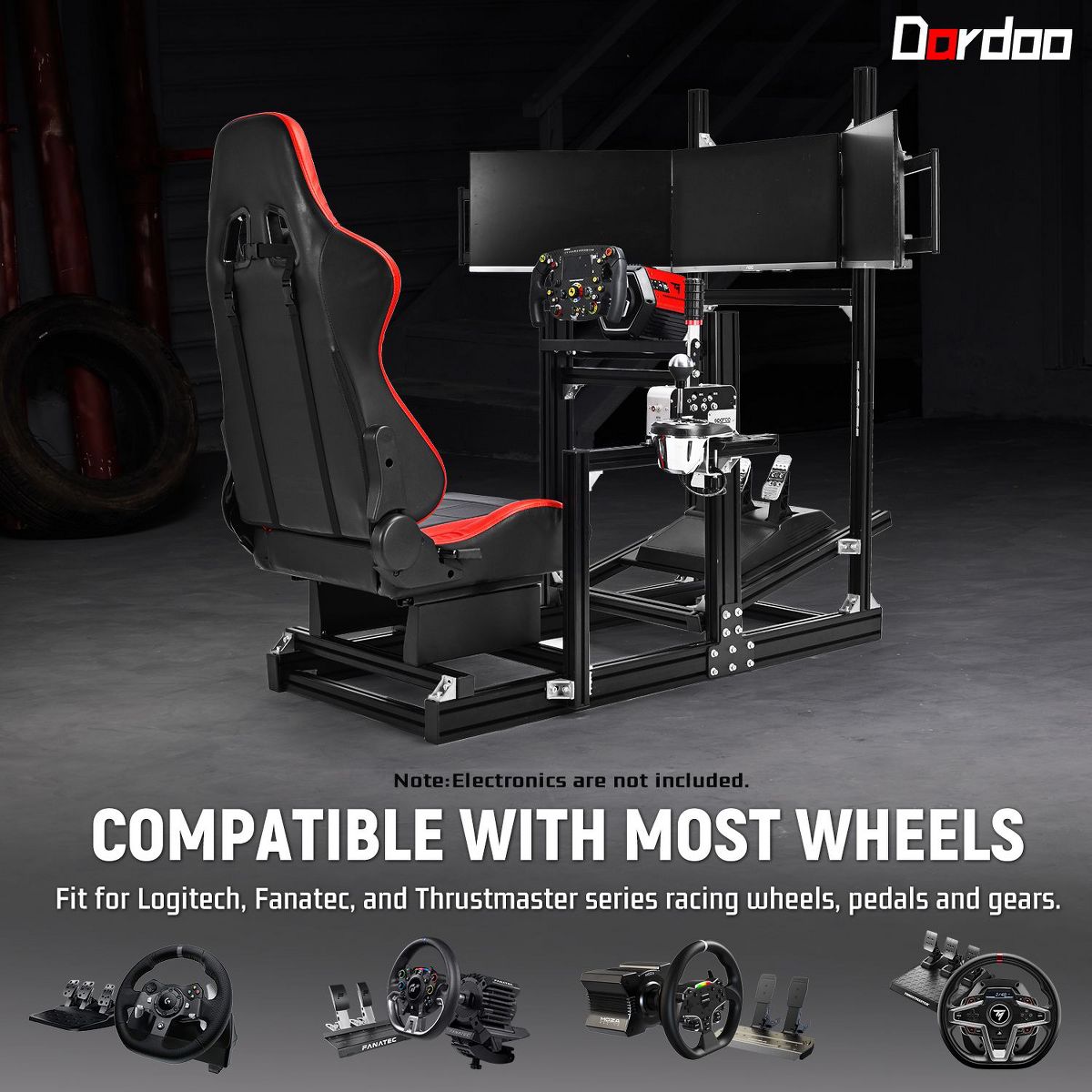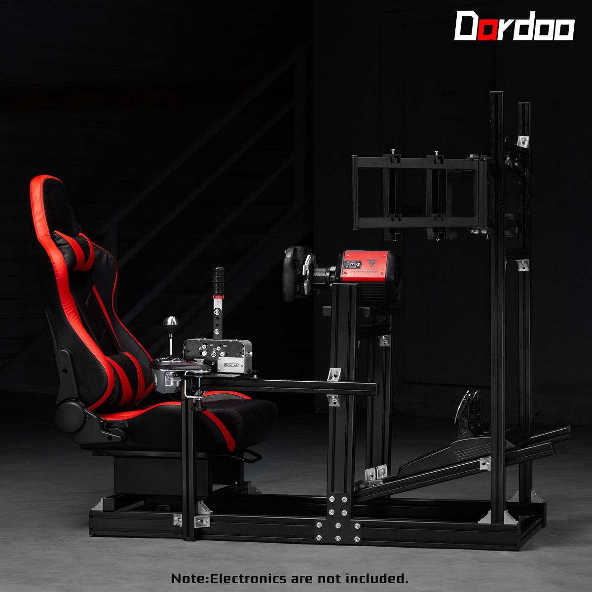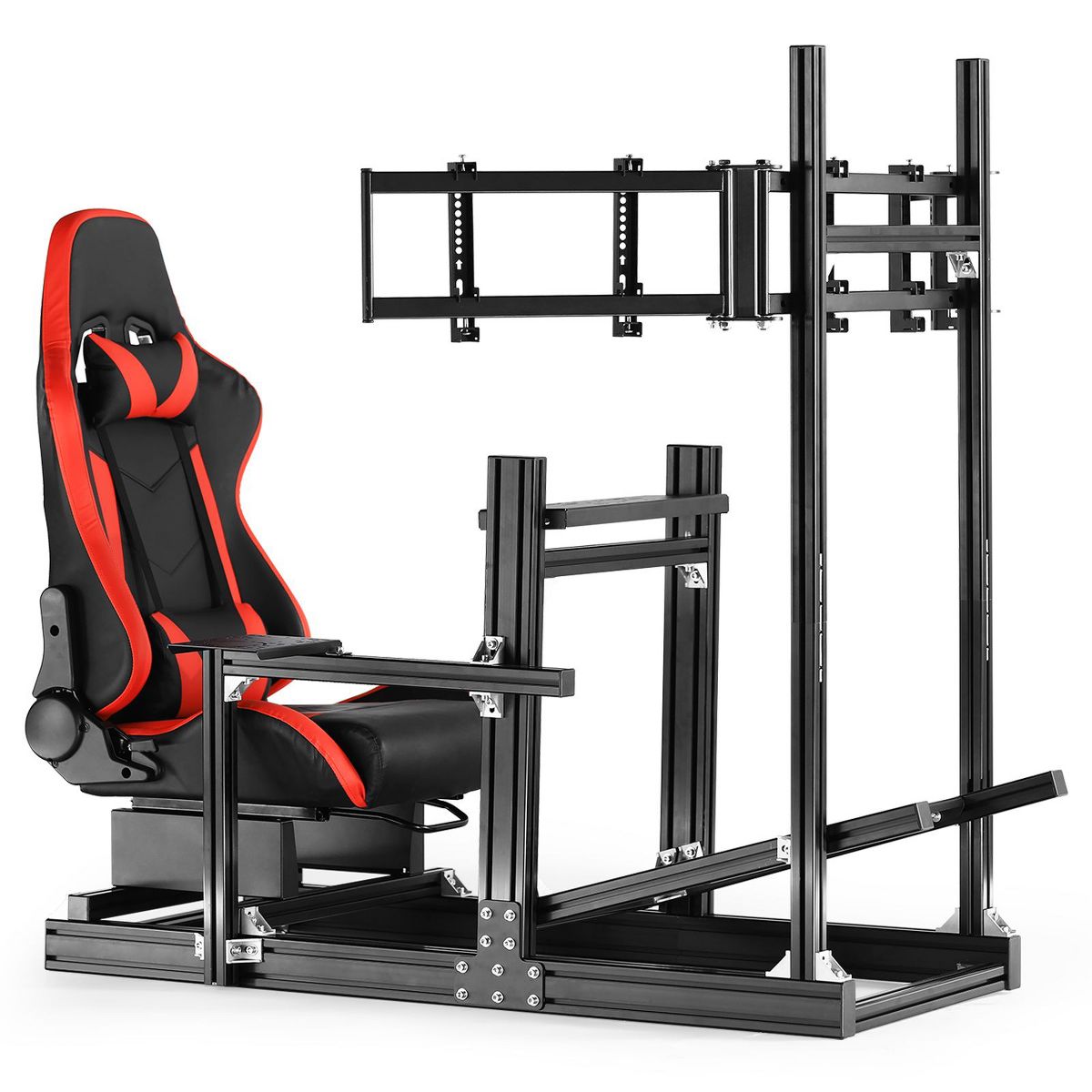 Dardoo 4080 T-profile Aluminium Racing Sim Cockpit with Triple Monitor Mount & Red Seat, for Logitech & Thrustmaster (No Electronics)
