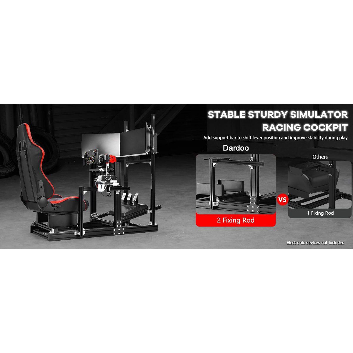 Dardoo racing cockpit stand provides a modular expansion platform built on standardized aluminum profiles, enabling continuous customization and upgradeability to keep pace with evolving sim racing requirements while ensuring long-term durability and professional-grade performance.