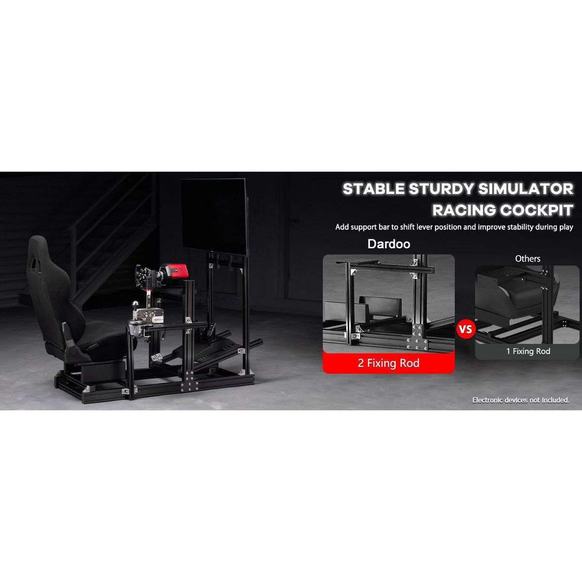 Dardoo racing sim cockpit ensures long-term adaptability, providing a solid foundation that grows with your simulation ambitions through seamless integration of accessories and upgrades, all engineered to meet the demands of evolving racing technologies.