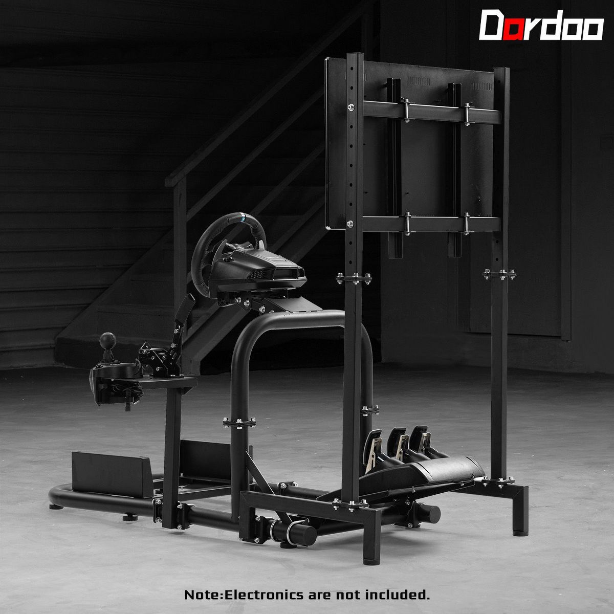 Dardoo the package includes the racing stand and display mount specifically; please note that pedals, shift levers, steering wheels, and displays are not included. For any questions about the Dardoo simulator cockpit, our customer service team is readily available and committed to responding to your inquiries within 24 hours.