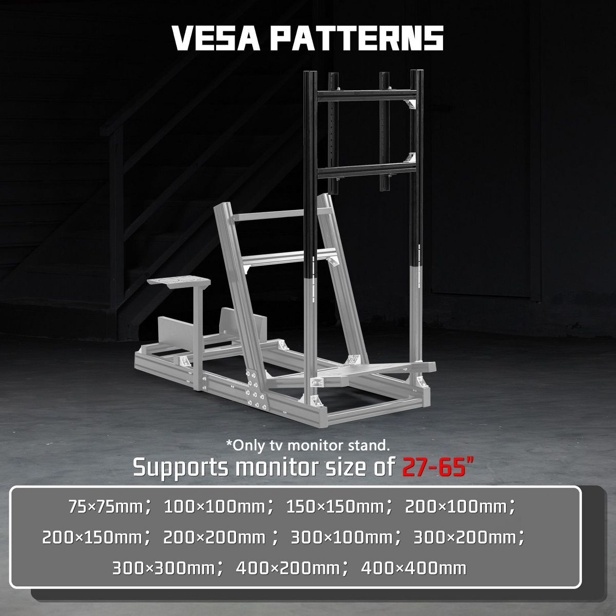 Dardoo Adjustable Single Monitor Stand for 4080 Aluminum Racing Sim Cockpit Supports 27-65in with Angle Adjustment for Immersive Gaming.
