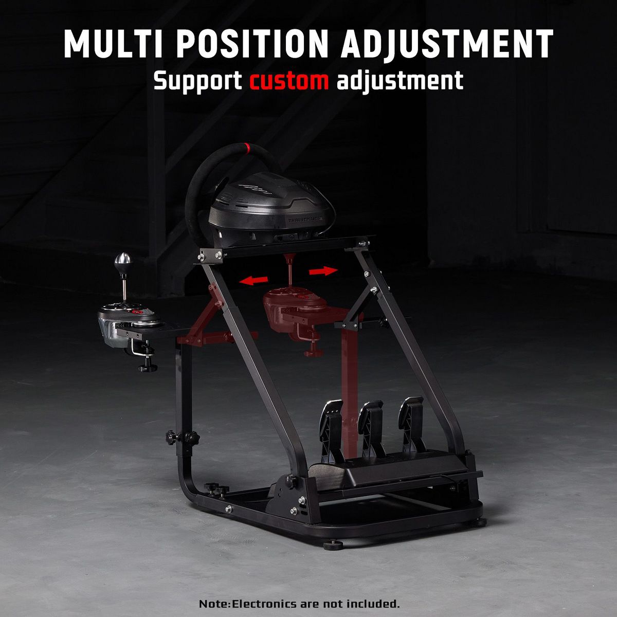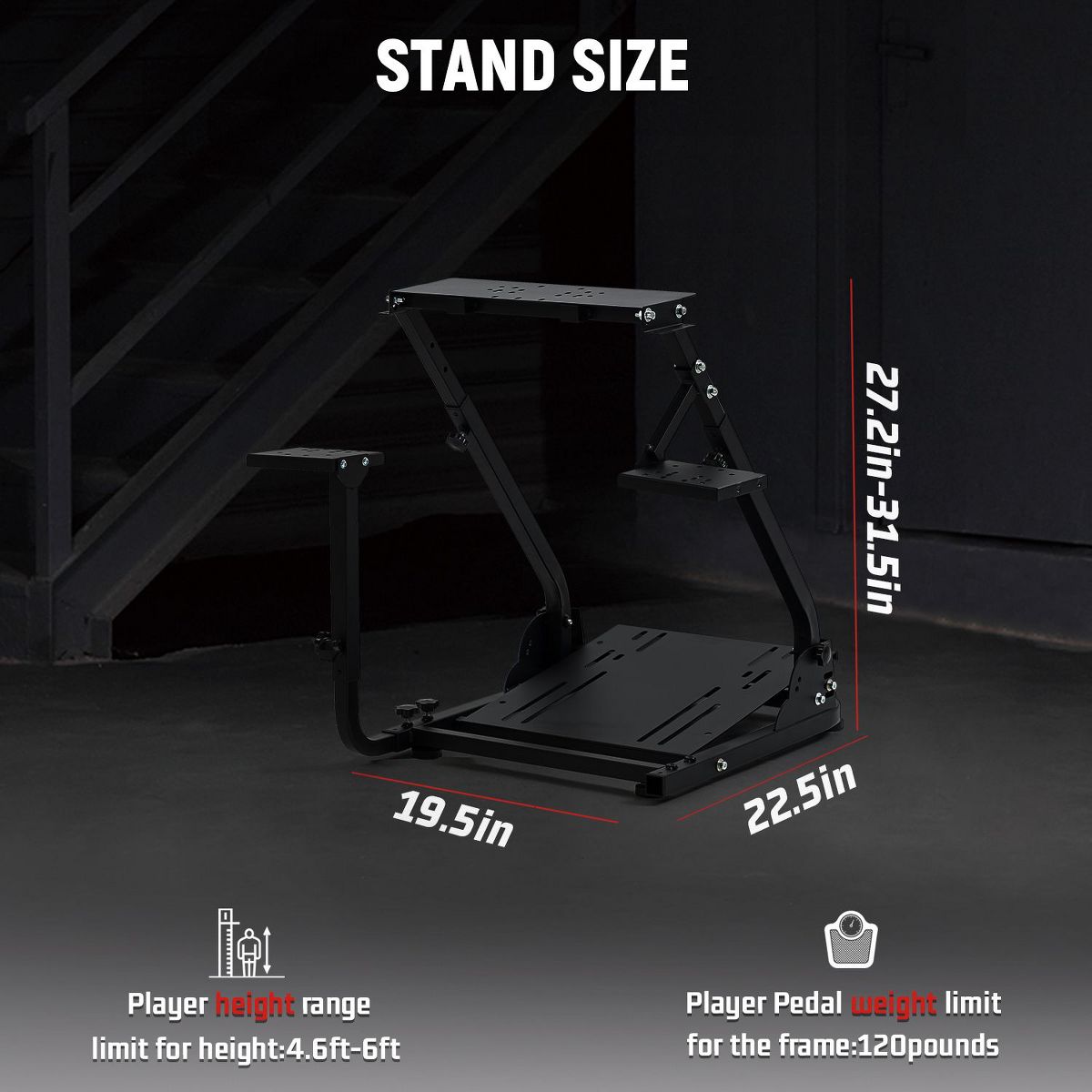 Dardoo racing wheel stand is built from robust 30×30mm square tube alloy steel—sturdy, stable, and easy to clean—with pedals rated to support up to 120 lbs. It offers versatile adjustments: steering wheel and pedal angles, overall height, and left/right gear lever positioning to match regional driving preferences.