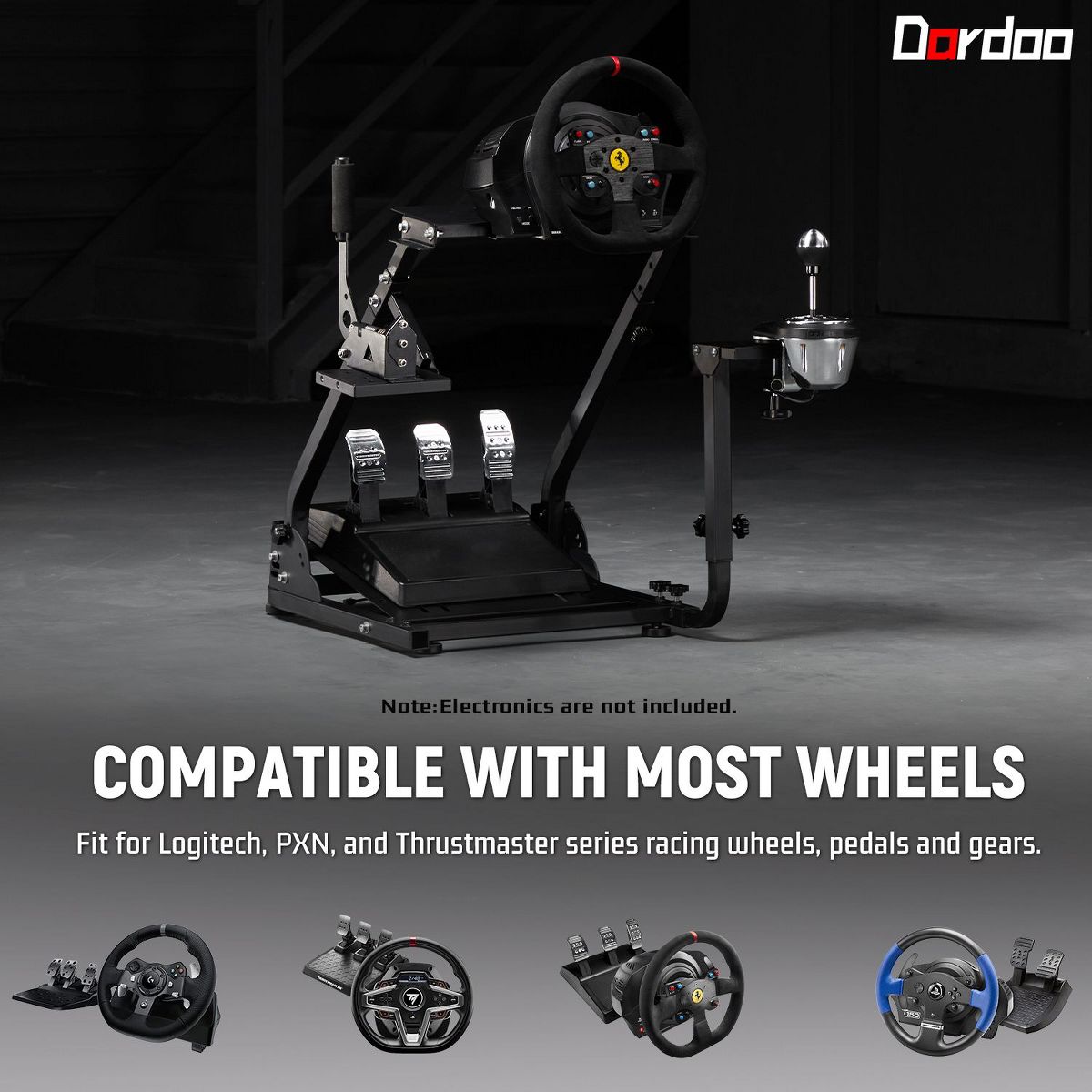 Dardoo space-saving design folds in seconds, perfect for compact spaces, and is widely compatible with popular wheels though not suitable for direct drive steering wheels.