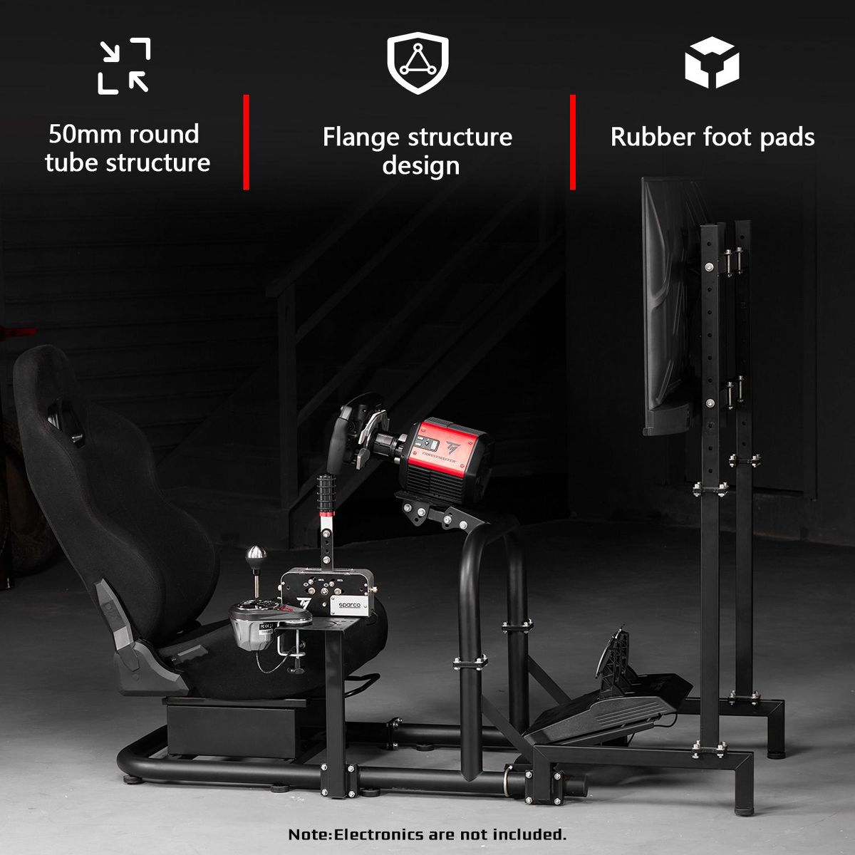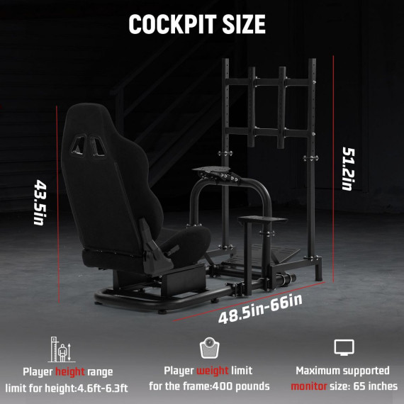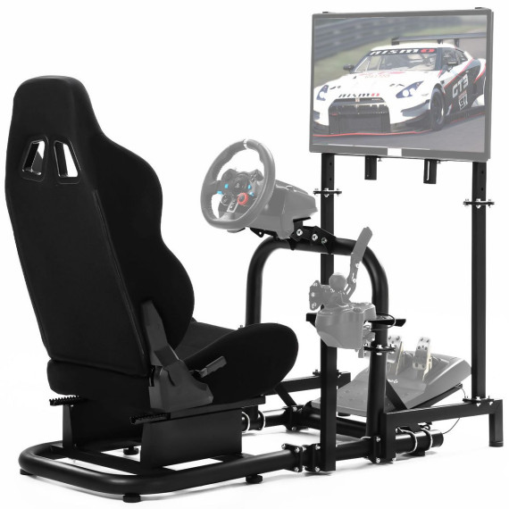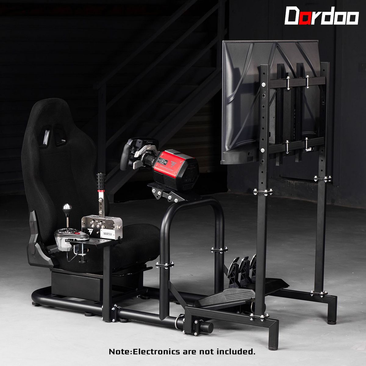 Dardoo Pro Adjustable Racing Sim Cockpit with TV Stand & Black Seat for Logitech G923 G29, Thrustmaster, Fanatec | No Wheel、Pedal and Gear