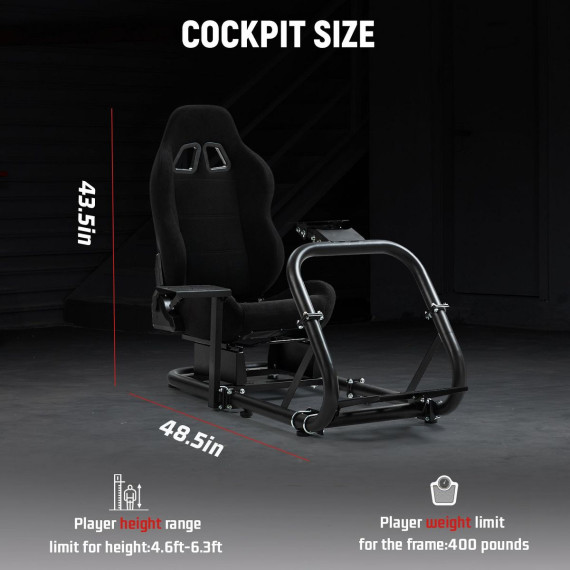Dardoo Racing Cockpit Frame with Seat Stable & Adjustable for Logitech G29/G923 & Thrustmaster Wheel/Pedals Not Included