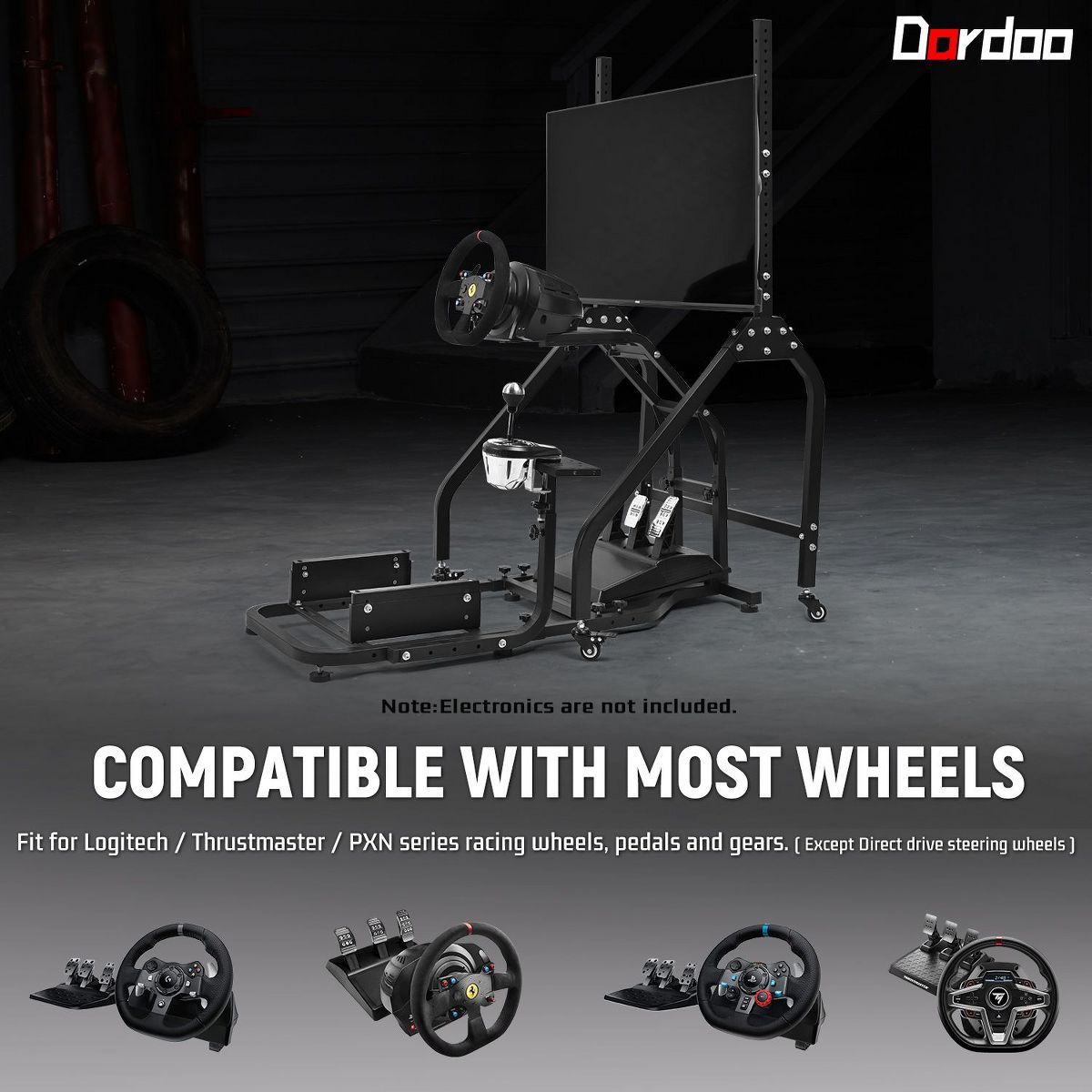 Dardoo Racing Sim Cockpit & Movable Monitor Stand for Logitech G29/G923 & Thrustmaster T150/T248/T80,Without Wheel Shifter Pedal and TV