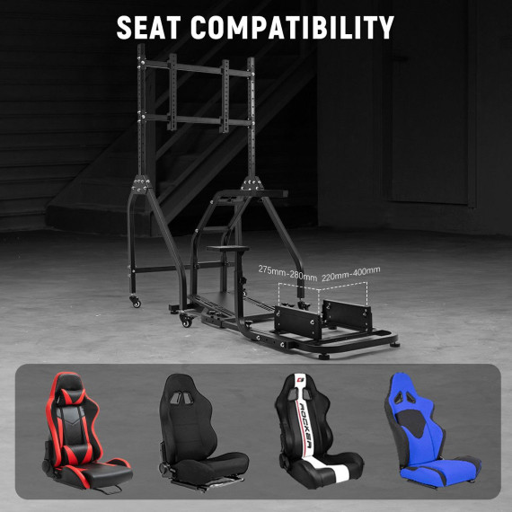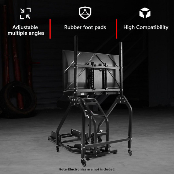 Dardoo racing simulator stand provides customizable ergonomic positioning through its fully adjustable framework, accommodating various user heights while maintaining industrial-grade stability. This versatile stand incorporates a mobile display solution with secure positioning and universal peripheral compatibility for comprehensive simulation experiences.