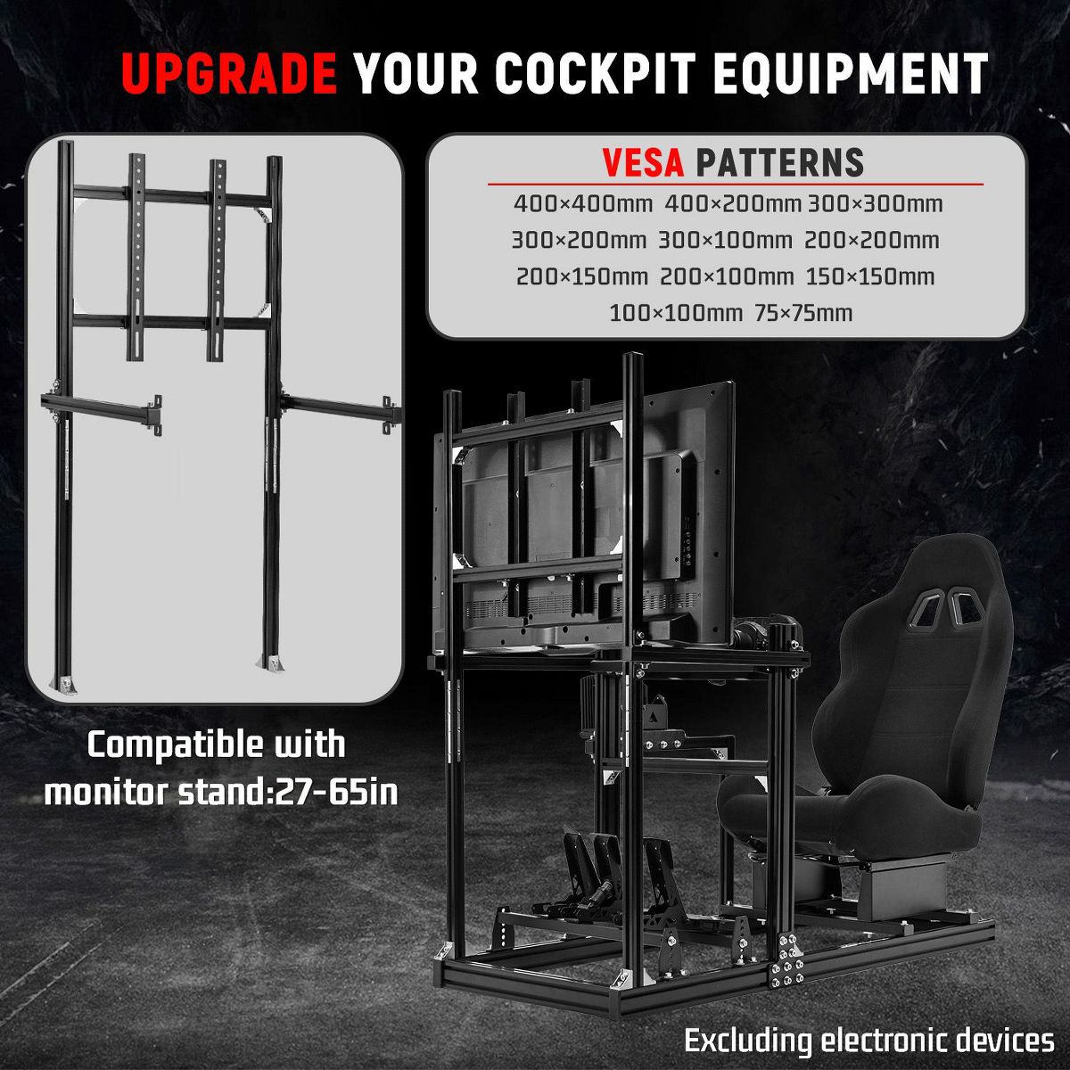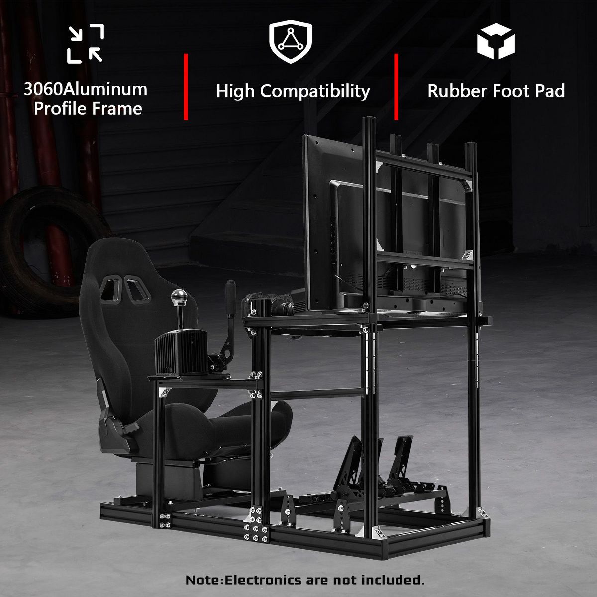 Dardoo Racing Sim Cockpit with Black Seat&Monitor Mount-3060 Aluminum Profile-Compatible with Logitech,Thrustmaster,Fanatec(Wheel/Pedal Not Included)