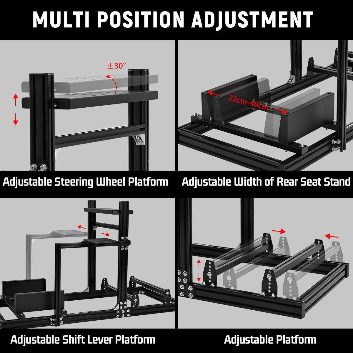 Dardoo racing cockpit system combines robust aluminum construction with multi-directional customization, delivering exceptional stability while accommodating various driving positions through adjustable control interfaces. The expanded mounting panel supports flexible peripheral arrangements, while comprehensive device compatibility ensures seamless integration with major racing equipment brands.