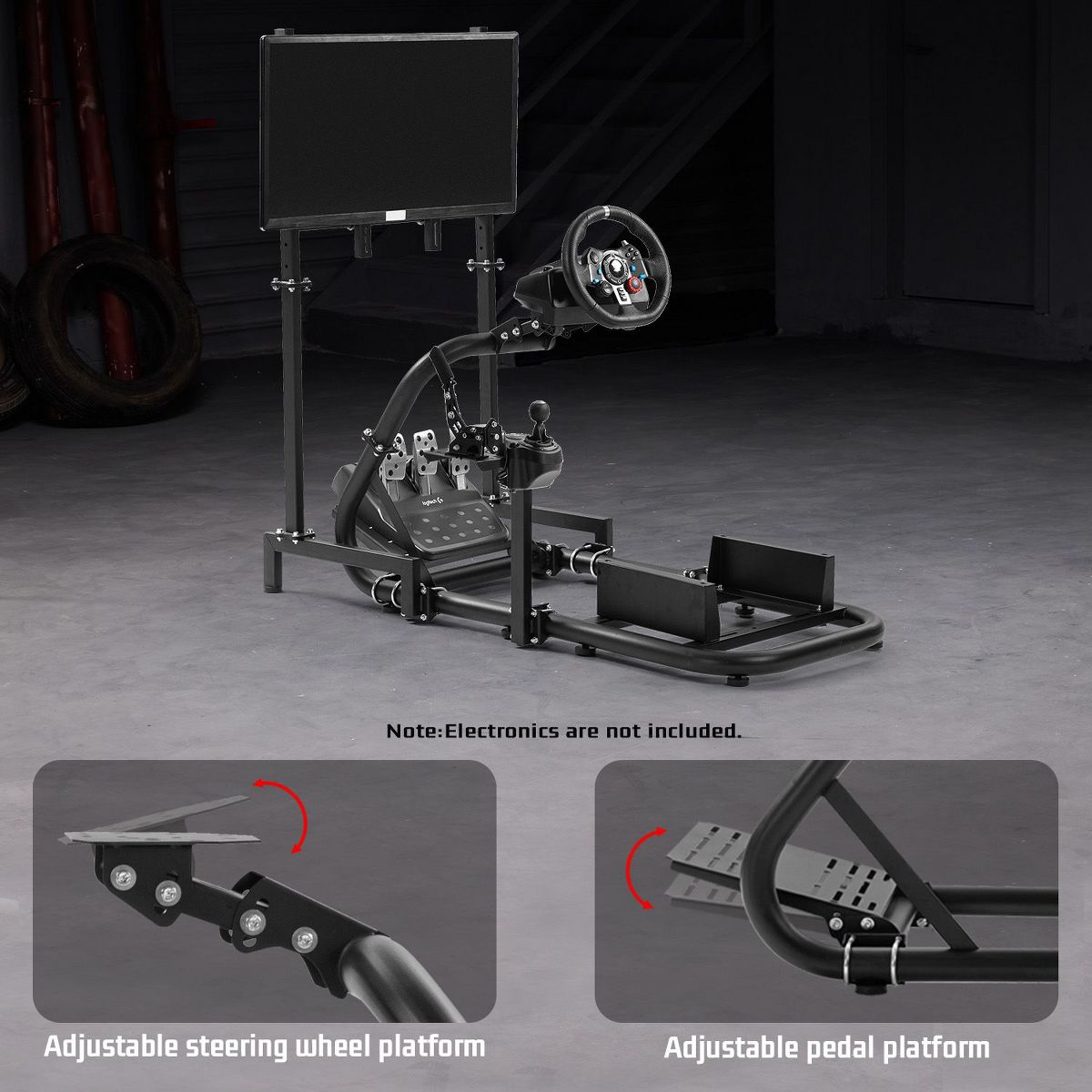 Dardoo Racing Simulation Cockpit Wheel Stand with Single Screen Display Bracket, Simple And Adjustable Design, Fit for Logitech G923