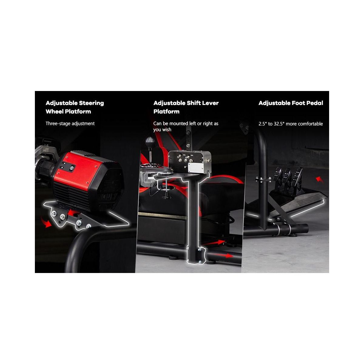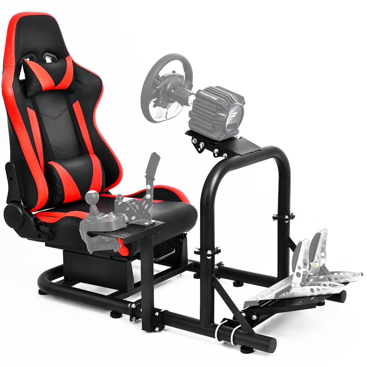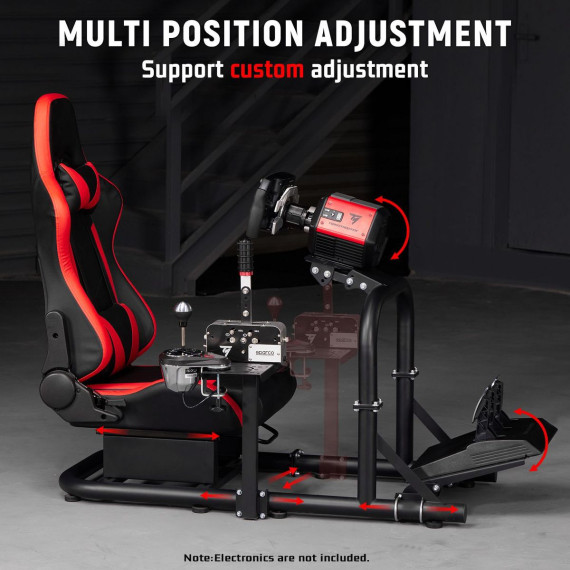 Dardoo the sim cockpit stand boasts high adaptability, compatible with nearly all Logitech, Fanatec, and Thrustmaster racing wheels, pedals, and gears, and is capable of accommodating direct-drive bases and TV bracket mounts. Please be aware that the Dardoo cockpit and seat are sold as a standalone unit; the steering wheel, pedals, and gear shifter are not included, allowing you to choose your own preferred peripherals.
