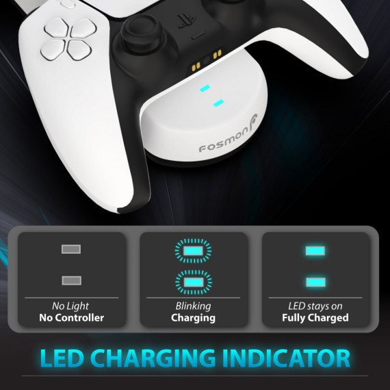 Fosmon For PS5 Charging Dock, PS5 Controller Charger, Charging Station Dock, Controller Charger Station W/ LED for PlayStation 5 Controllers, White