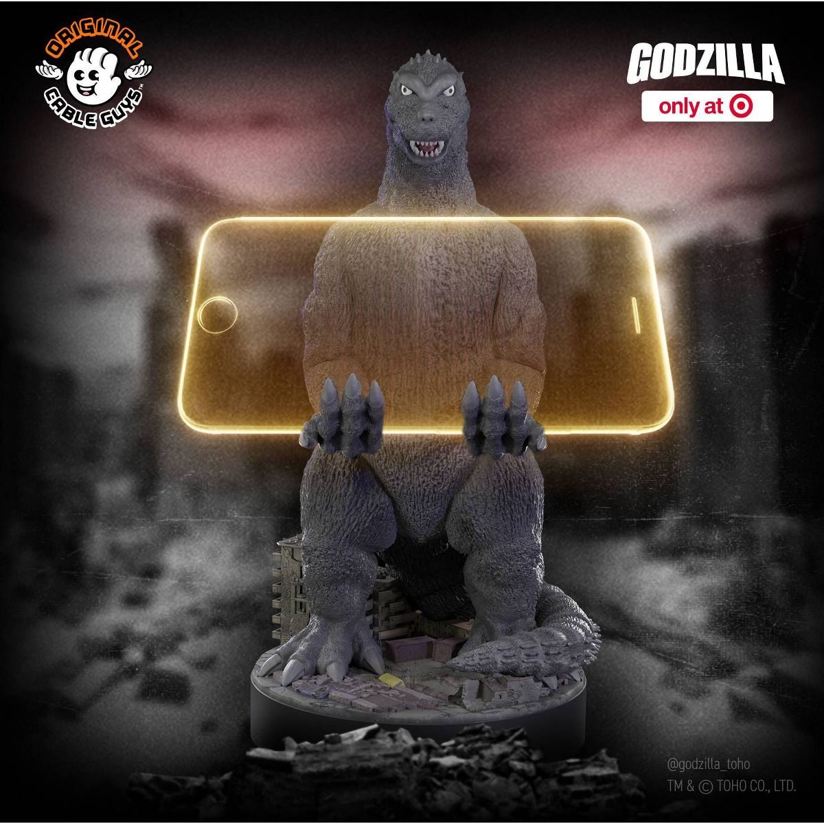 Introducing the Gojira City Destroyer Cable Guy, celebrating 70 years since the King of the Monsters first made their awe-inspiring appearance on the screen. This Cable Guy is more than a mere accessory; it's a celebration of Godzilla's enduring legacy in cinematic history. This iconic monster securely holds your phone and consoles, embodying the fearsome spirit that has captivated audiences for seven decades.