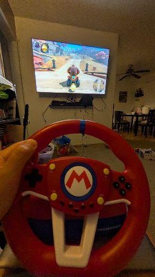 Hori is pleased to present the Nintendo Switch Mario Kart Racing Wheel Pro Mini! This racing wheel is ideal for any Mario Kart or racing gamer that likes to get right in the action! The ergonomic wheel design, pedals, and convenient onboard controls were built to create an authentic racing simulation. Officially Licensed by Nintendo.
