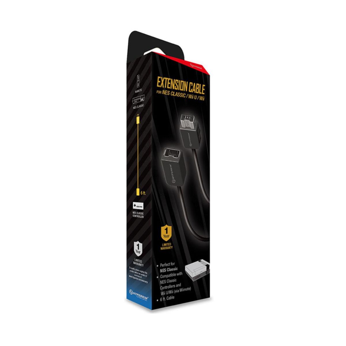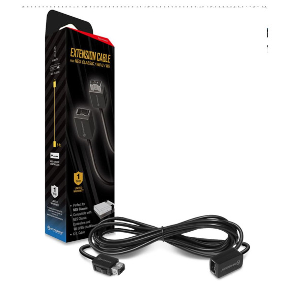 Enhance your gaming setup with the NES Classic Edition/Wii U/Wii Extension Cable (6 ft.)! This 6ft. cable is compatible with the Hyperkin Adapter for NES® Classic Edition, as well as NES® controllers. It also works seamlessly with Super NES® Classic Edition/NES® Classic Edition controllers and Wii U®/Wii® via Wii Remote.