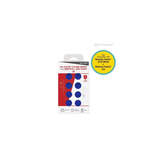 Upgrade your gaming experience with Hyperkin's Silicone Thumb Grips for Joy-Con® (Blue)! These grips improve your grip and comfort, preventing slippage during intense gameplay. Easy to apply, they add additional protection for your joystick and are compatible with Joy-Con®. Thumbs up for better control and enhanced comfort!