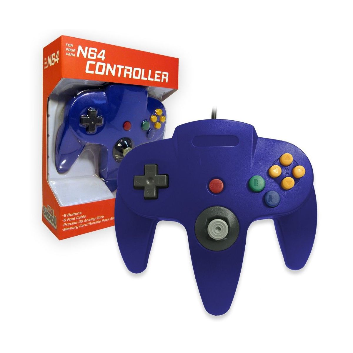 The Old Skool N64 controller has the same shape and feel as Nintendo's original design. Featuring 10 active buttons (including Left and Right shoulder functions, and Z-trigger) The analog stick is as precise as it gets while the legendary D-pad offers a classic gaming feel. The controller's data port is compatible with any N64 Rumble or Memory Pak, Our controller Sports 6-foot long cord. This is the perfect replacement for your broken or lost Nintendo 64 controller.