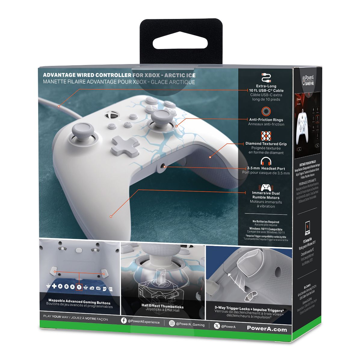 Take your game to new levels with the PowerA Advantage Wired Controller for Xbox Series X|S. Licensed by Xbox, this controller is equipped with Hall Effect Modules in the thumbsticks providing a more pro-level feel to help with precision and longevity. Customize for any playstyle with two mappable Advanced Gaming Buttons and 3-Way Trigger Locks. Plus, additional features like Dual Rumble Motors, anti-friction rings for smooth motion, and a lightweight ergonomic design. Sit back in comfort with the extra-long 10 ft. USB-C cable. This controller also works great on Windows 10/11. Backed by a 2-year limited warranty.