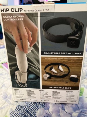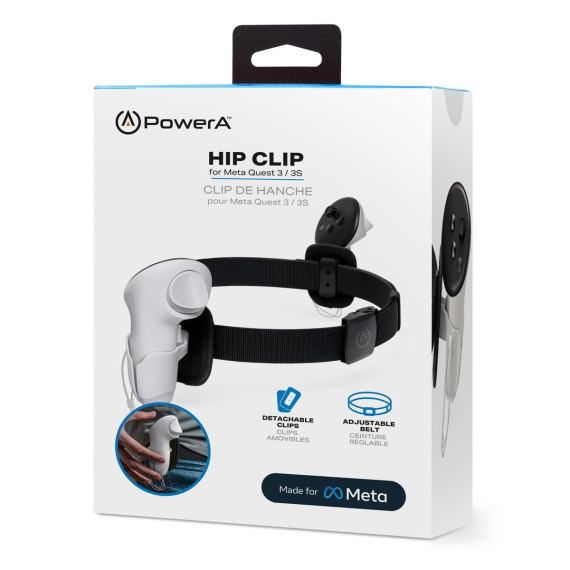 Keep your Meta Quest 3 / 3S controllers at the ready to jump into your favorite VR games with the PowerA™ Hip Clip for Meta Quest 3 / 3S. Officially licensed for Meta Quest 3 / 3S, the Hip Clip provides a convenient way to store each controller that keeps them out of the way when you’re not using them, but instantly accessible when it’s time to jump back into action. The clips on the belt securely hold the controller while standing, seated, or walking and can also be removed and placed on your own belt of preference. The belt size is adjustable up to 45 inches allowing you to find the optimal fit. 2-Year Limited Warranty.