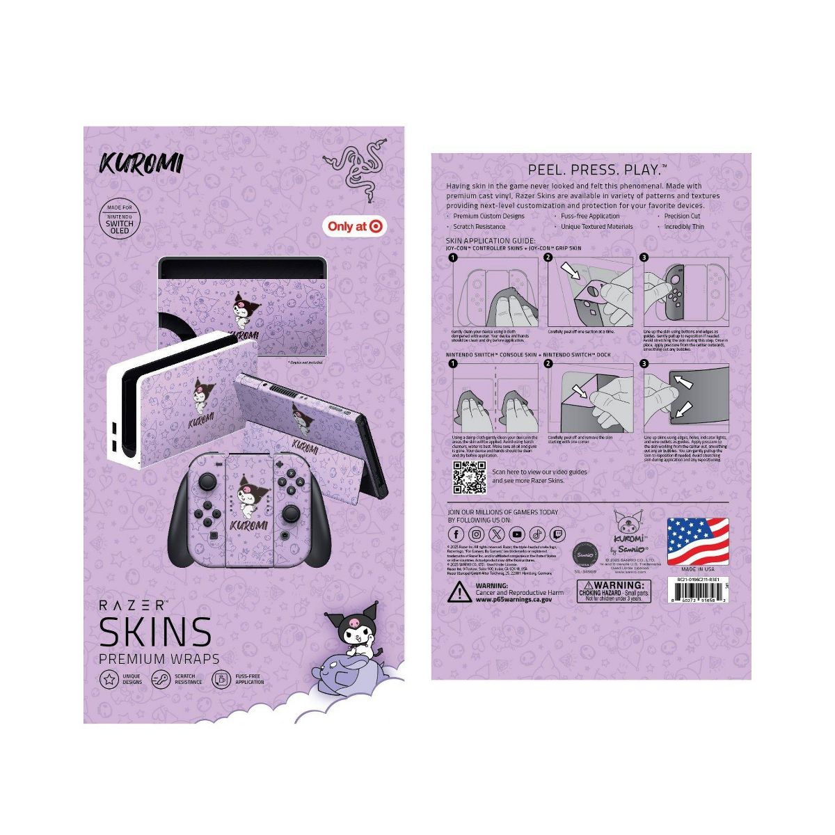 Razer Skins - Nintendo Switch OLED (2021) - Kuromi - Purple: Video Game Console Covers