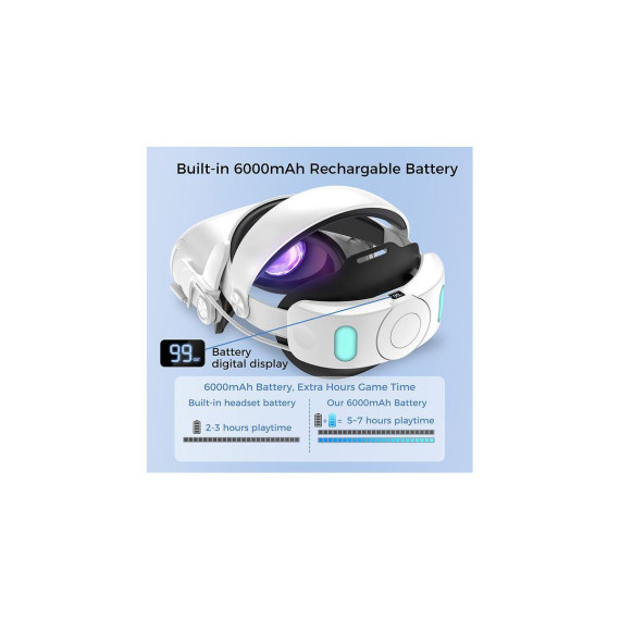 Sungale Alpha Digital Meta Quest 2 Head Strap Replacement 6000mAh Battery 4 Hour Extended Game Play - Adjustable & Lightweight