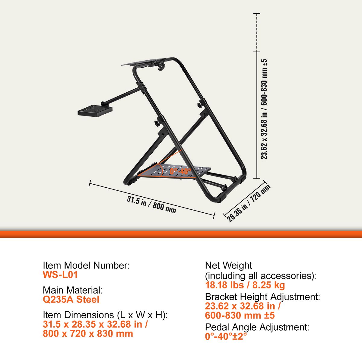 Create an Exclusive Sitting Position: Adjustable steering wheel height, universal shift lever, adjustable pedal Angle 0° to 40°, you will enjoy the most comfortable driving experience, whether on the simulation track or in the racing game.