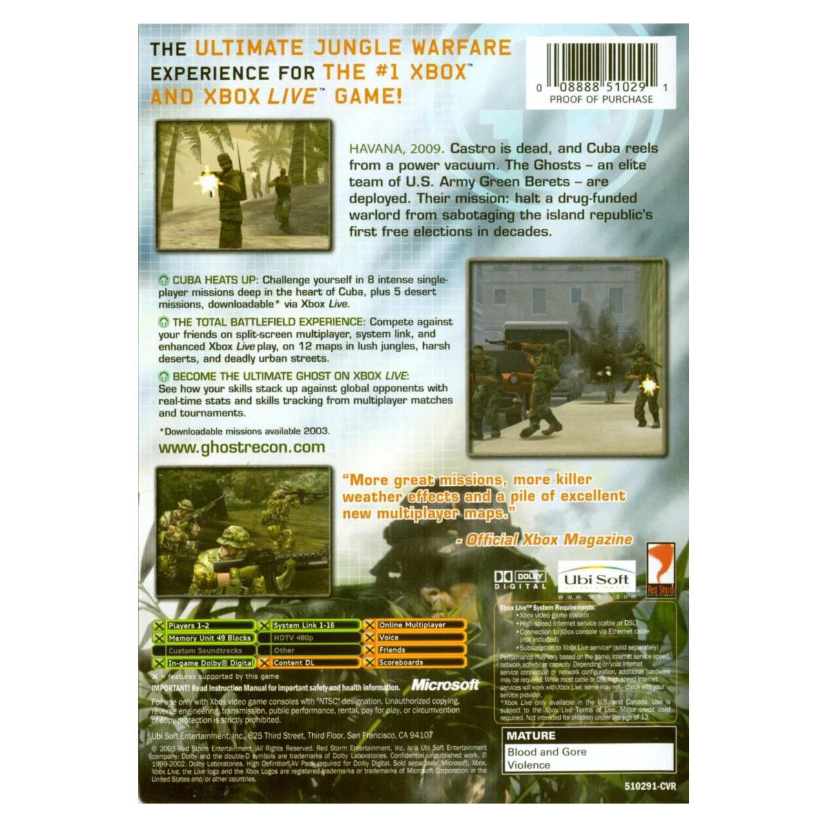 Ghost Recon: Island Thunder takes you back into the world's combat zones, with an all-new mission to complete! Xbox Live compatible, for exciting online gameplay Become swift, silent and deadly, as you face danger on the battlefield, with the deadly Ghost Recon!