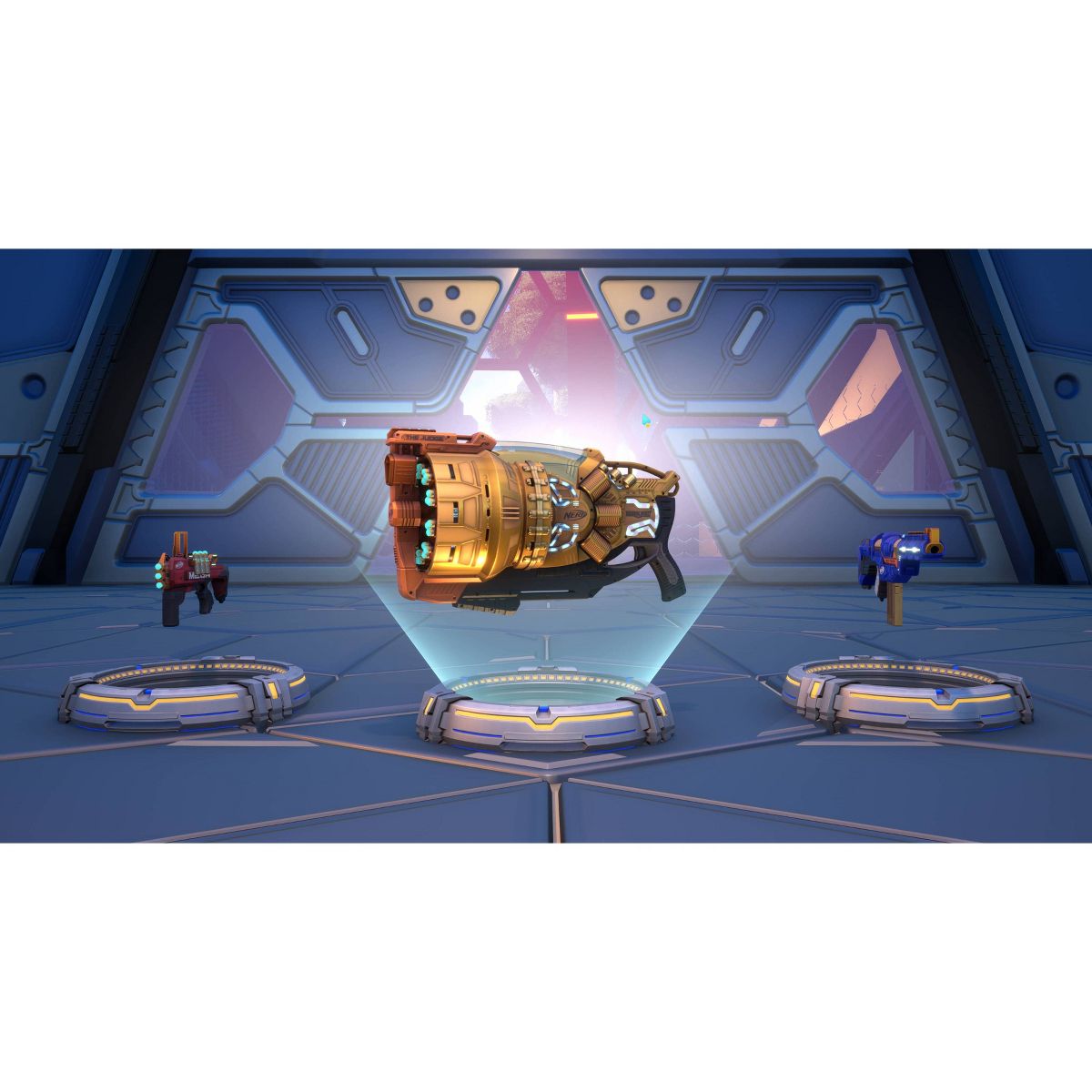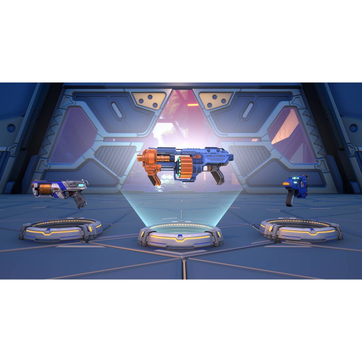 NERF Legends thrusts you into a futuristic, sci-fi world where you'll come face-to-face with legions of robot enemies and ultimate boss masters. Armed with a wide array of NERF blasters based on their iconic, real-world counterparts, you'll thwart formidable enemies while being challenged to pull off the most impressive high-flying trick shots across a series of unique and immersive environments. Are your NERF skills up to the challenge to become the ultimate NERF Legend?