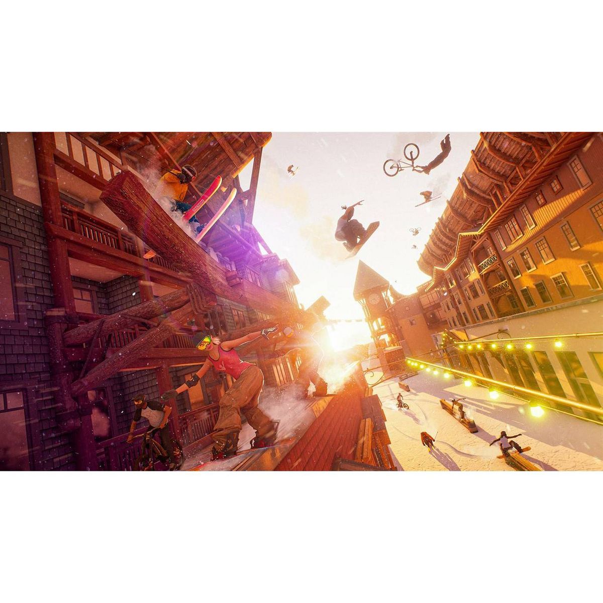- Bike, ski, snowboard, or wingsuit through a seamless open world in Career mode or multiplayer events.
