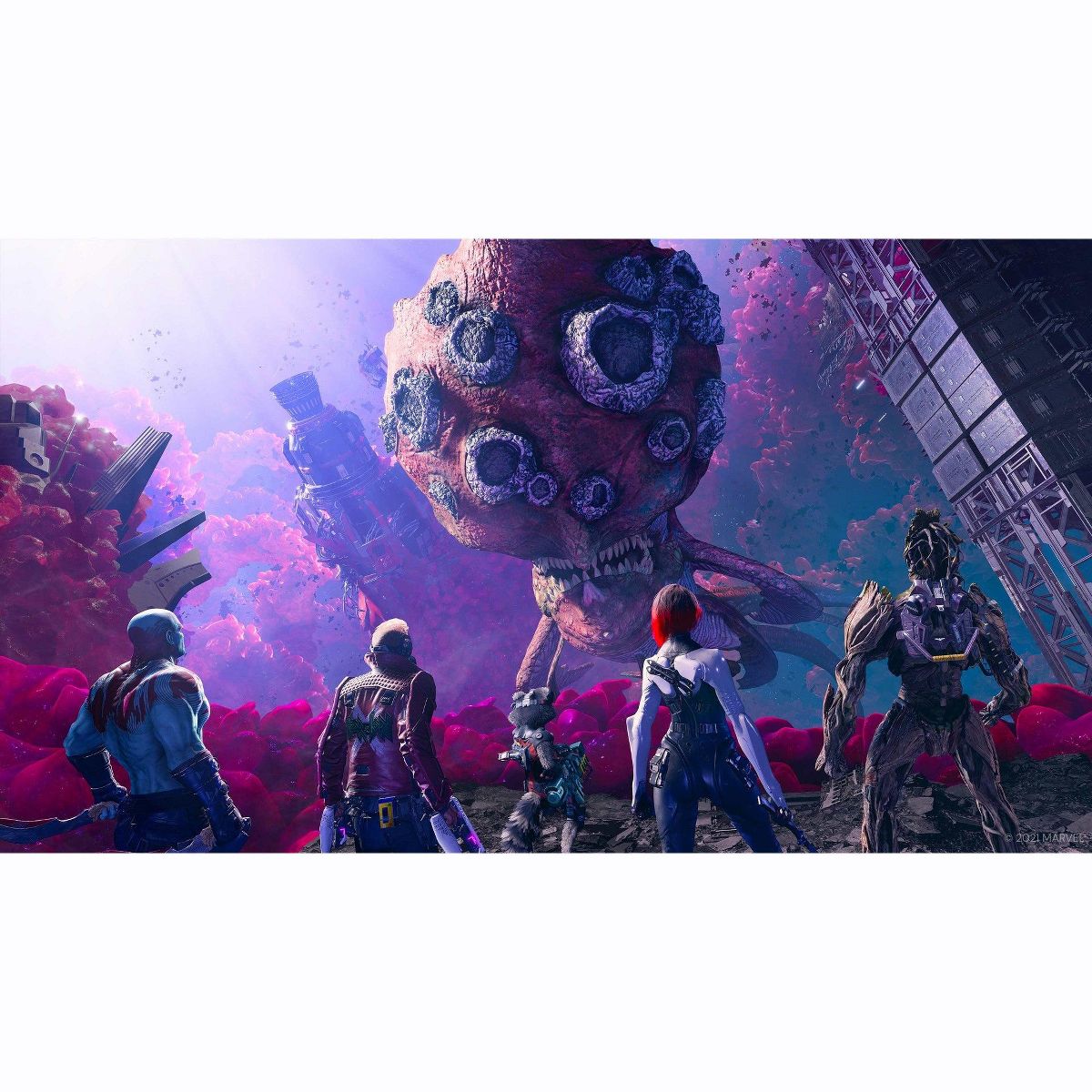 Lead as Star-Lord in an out-of-this-world adventure in Marvel's Guardians of the Galaxy from Eidos-Montréal and Square Enix for the Microsoft Xbox Series X and Microsoft Xbox One.Fire up Star-Lord’s jet boots for a wild ride across the cosmos in this third-person action-adventure game, a fresh take on Marvel’s Guardians of the Galaxy.Lead the Guardians of the GalaxyYou are Star-Lord, so nothing’s off-limits with your bold combat style, from Element Blasters and jet boot-powered dropkicks to tag-team beat-downs. With the Guardians fighting at your side, call the shots and overwhelm your opponents with signature attacks. Meanwhile, the consequences of your decisions will range from light-hearted to downright unexpected as your journey unfolds.All-New StoryYour newly-formed band of legendary misfits is set to save the universe in this fresh but faithful take on the Guardians of the Galaxy. Somehow, you set off a chain of catastrophic events, leading to a wild ride through mind-blowing worlds inhabited by iconic and original Marvel characters. Turn up the all-star ‘80s mixtape and get ready to kick it.From Misfits to Super HeroesYou’re the only thing holding the unpredictable Guardians together, so you’ll have to get better at this leadership thing fast. With this offbeat approximation of a family at your side, there will be tears and laughter as you set about tearing into the cosmos together. Whatever’s waiting around the next corner, you know it’s going to be a blast.With the unpredictable Guardians at your side, blast your way from one explosive situation to another, with original and iconic Marvel characters caught in a struggle for the fate of the universe. You got this. Probably...Features:A Raucous Playlist - It wouldn't be Guardians of the Galaxy without a killer soundtrack to rock out to while soaring through space in the Milano. The game is jam-packed with classic 1980s hits and kicking original tracks.Single-Player Adventure - Experience an electrifying, original storyline inspired by over 50 years of Guardians of the Galaxy lore. Selectable dialogue options between Quill and the Guardians help you strengthen the bonds within this dysfunctional family.Dynamic Combat Style - Obliterate foes with Star-Lord's Element Blasters and call on the unique abilities of each Guardian to defeat a wild variety of cosmic enemies. Mix and match your daring skills and your crew’s distinct strengths to fight with talent and style.