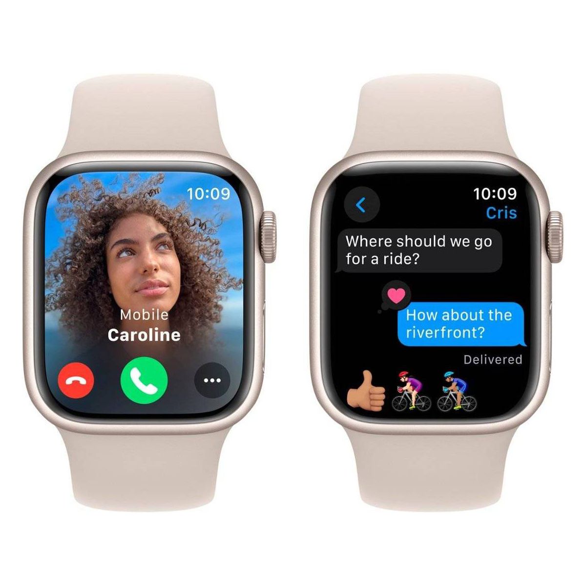 Apple Watch Series 9 helps you stay connected, active, healthy, and safe. Featuring double tap, a magical way to interact with Apple Watch, ¹ an even-brighter display, faster on-device Siri, and Precision Finding for iPhone. ²