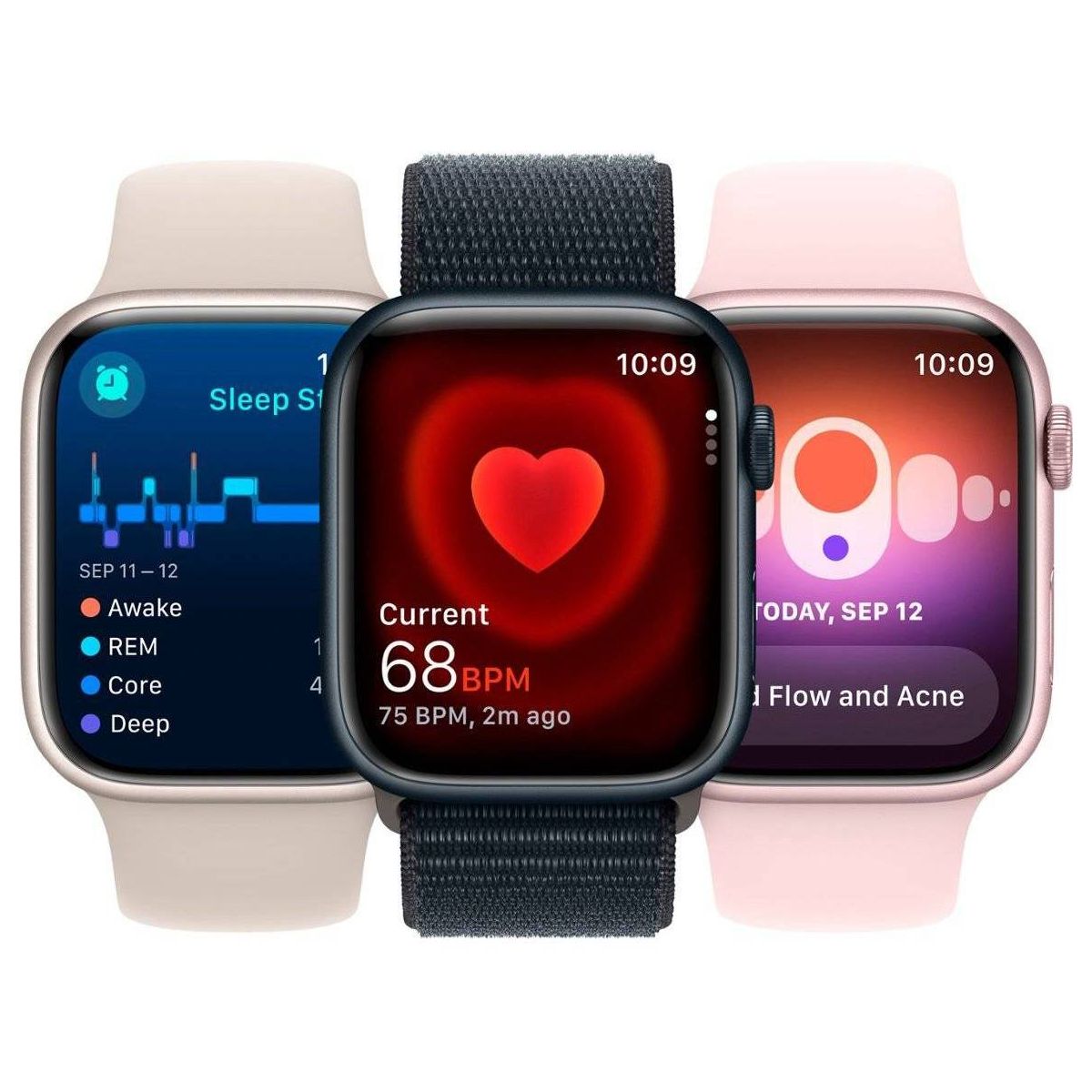 Apple Watch Series 9 helps you stay connected, active, healthy, and safe. Featuring double tap, a magical way to interact with Apple Watch, ¹ an even-brighter display, faster on-device Siri, and Precision Finding for iPhone. ²