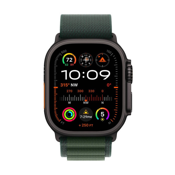 Apple Watch Ultra 2 GPS + Cellular 49mm Black Titanium Case with Dark Green Alpine Loop - Small