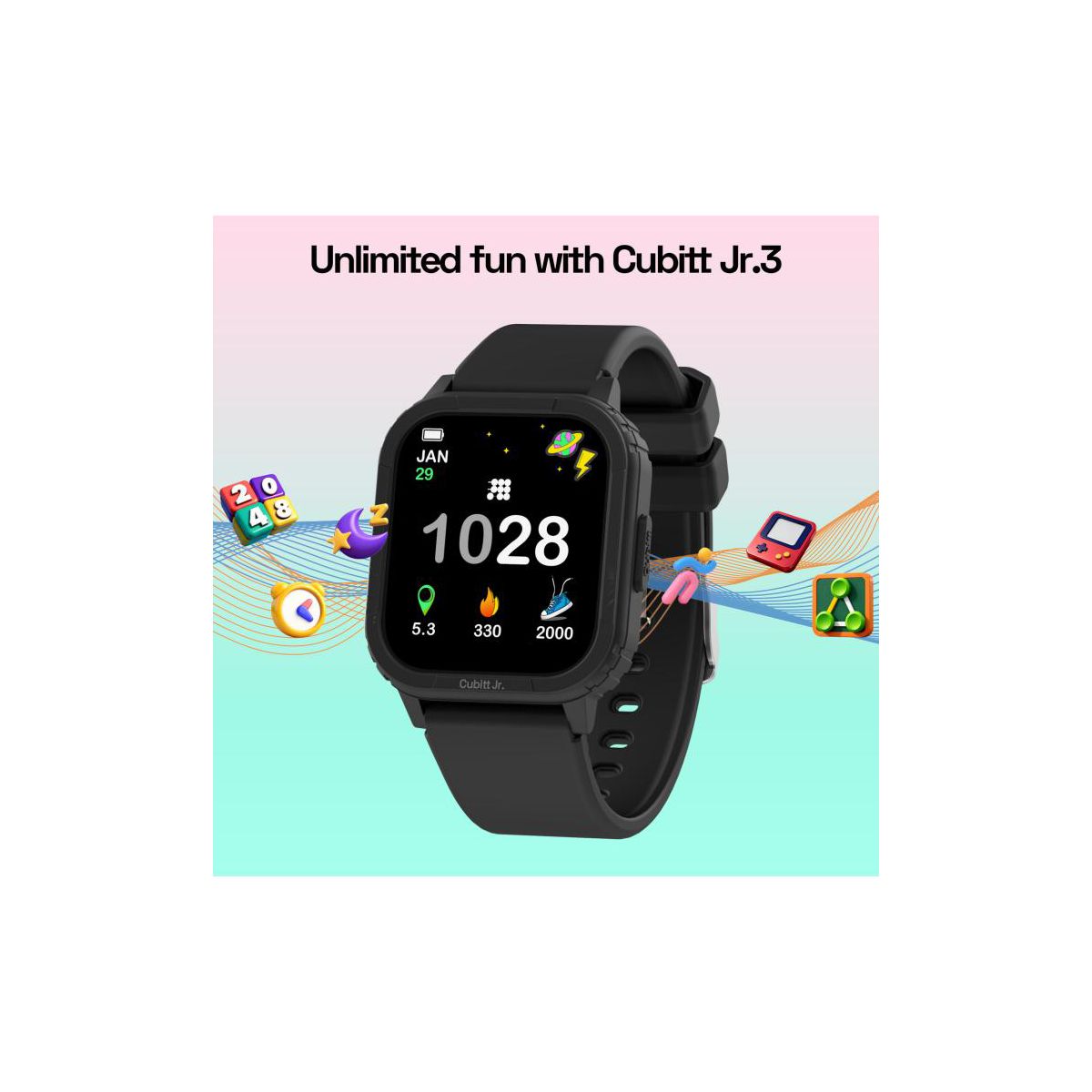 Cubitt Jr Smart Watch for Kids & Teens: Games, Step Counter, Sleep & Heart Rate Monitor, Activity Tracker, Good Habits Alarms, Black