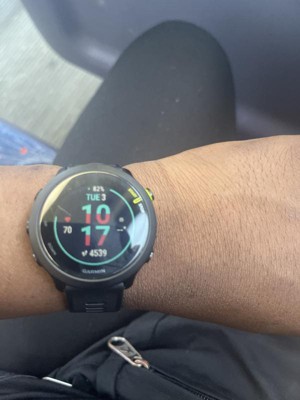 See yourself as a runner. Forerunner® 55 is the GPS running smartwatch that goes beyond pace and heart rate (this is not a medical device) stats. Take the guesswork out of training with personalized guidance and daily suggested workouts based on your training history and fitness level. Change things up with HIIT and breathwork activity profiles. Advanced wellness tracking features, such as all-day respiration monitoring, intensity minutes and more, put you in tune with your body. Get more runs in between charges, thanks to this watch’s long battery life, and make it truly your own by downloading watch faces, apps and more from the Connect IQ™ Store (requires Garmin Connect™ app and Connect IQ™ app loaded on a compatible smartphone).