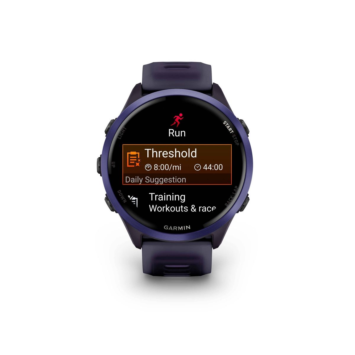 For dedicated runners chasing goals, there’s Forerunner® 570 — the GPS running smartwatch with our brightest AMOLED display, aluminum bezel and advanced training features. Get ready for your race with personalized plans from Garmin Coach for running and triathlons — and select plans adapt based on your performance and recovery. Use the training readiness feature to know when you’re primed for a productive workout, and use training status to know if you’re training productively. With multi-band GPS, you’ll get superior positioning accuracy in challenging environments. Forerunner 570 has a built-in speaker and microphone so you can make or take calls from your wrist (when paired to your smartphone). Before heading to bed, check your evening report, which helps you prepare for the next day with reminders of sleep needs, tomorrow’s workout, weather and more. You’ll always be ready to hit the ground running with up to 11 days of battery life in smartwatch mode and up to 18 hours in GPS mode.