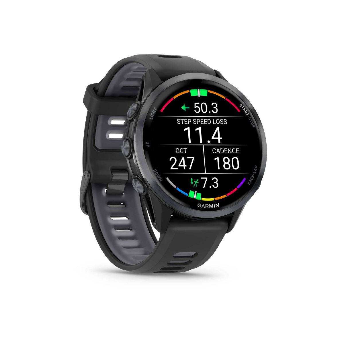 For performance-driven runners, there’s Forerunner® 970 — the premium GPS running and triathlon smartwatch with our brightest AMOLED display, durable sapphire lens and lightweight titanium bezel. Use the built-in LED flashlight for greater awareness when you head out before the sun’s up or stay out past dark. Understand your overall energy efficiency with running economy, and see how much you are slowing down when your foot hits the ground with step speed loss (HRM 600 monitor required; sold separately). Running tolerance helps you understand the real impact running has on your body so you can adjust your training to avoid overload and improve. Use multi-band GPS and full-color, built-in maps plus navigation enhancements to stay on track while you train. Forerunner 970 is ready to go as long as you are, with up to 15 days of battery life in smartwatch mode. If you ever go too far, use the built-in speaker and microphone to make a call from your wrist (when paired with your smartphone).