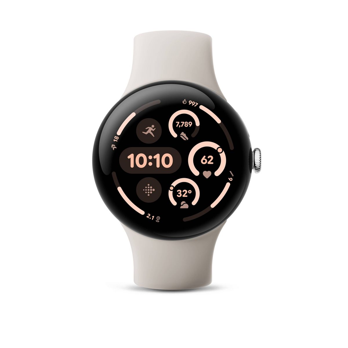 The Google Pixel Watch 3 is designed for performance.¹ The cutting-edge Actua display is bigger, brighter, and ultra responsive.² Beat your best times with advanced running features from Fitbit, then use all-new readiness and cardio load tracking to balance rest. And stay on top of your day with help from Google.
