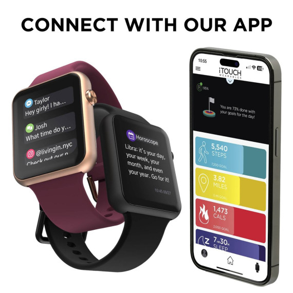 Stay on top of your health and fitness with the iTouch Air 4 Smartwatch. Whether you're counting steps, tracking your heart rate, or checking your sleep patterns, this watch has you covered. Choose from over 100 workout options and see real-time stats while setting goals for steps and calories. Plus, you'll get reminders to stay active and hydrated, along with useful features like weather updates, music control, and notifications. Compatible with both Android and iPhone, and with a battery that lasts up to 7 days, it's the perfect companion for your everyday routine.