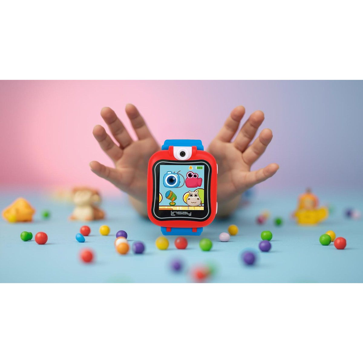 Your kids will feel all grown up with the New LINSAY Kids Smart Watch. This new watch does it all. It's a watch, an alarm clock, a camera, a stopwatch, a touch screen toy and a smart learning device all in one adorable package. Your kids will love the friendly hippopotamus who listens carefully and mimics simple sentences. It counts with the ability to modify a background from taken pictures or about to take pictures/videos, more than 20 analog and digital clocks face designs, timers, alarm clock, countdown timer. Featuring a 90¡ high-definition camera that's great for taking Selfies or front-facing objects. It also takes video and voice recordings. The LINSAY Kids Smart Watch was built with many games which were created for educational purposes and memory enhancement, making it perfect for an everyday use. For ages 4 and up.