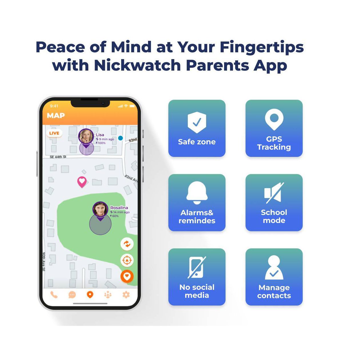 NickWatch Smartwatch for Kids with GPS and Safety Features, Requires NickWatch Data Plan