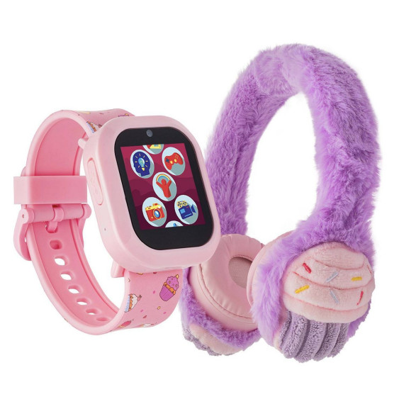 Playzoom V3 kids smartwatch & wireless headphones have amazing features, including fun selfie camera, voice recorder, photo effects MP3 player, audiobooks, stopwatch, alarm, timer and calendar. The wireless headphones have high-fidelity audio and Bluetooth technology for wireless audio streaming. Rechargeable battery offers 4 hours of play. Soft touch controls on ear cups to adjust volume and answer calls. Plush earpads and headband for perfect fit and long-lasting comfort. The watch does not connect to a cellular device and is kid safe!