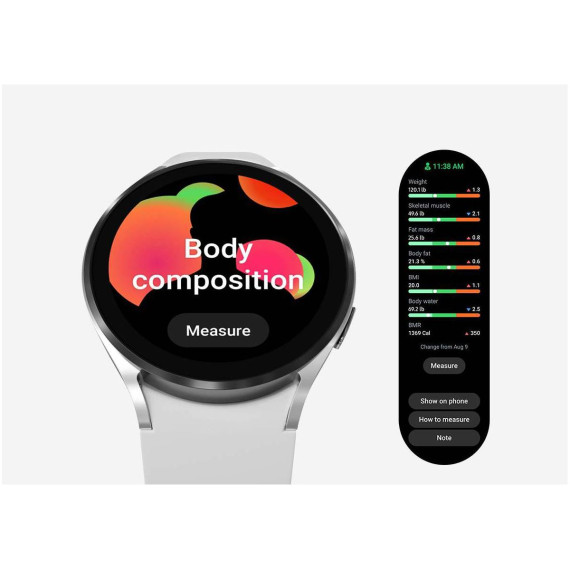 Get ready to crush your wellness goals - Galaxy Watch4 is the first smartwatch ever to offer body composition data right on your wrist. NO more waiting in line for a reading at the gym. On your own schedule, you can now get readings on body fat, skeletal muscle, body water, basal metabolic rate and Body Mass Index. ²